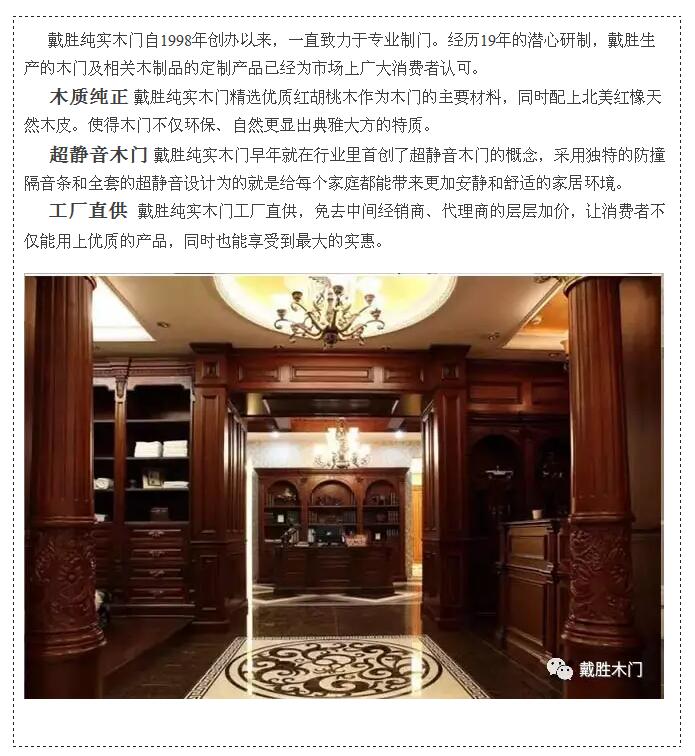戴勝定制整裝是一家由生產(chǎn)工廠直接為客戶提供家具定制服務(wù)的企業(yè)。主要經(jīng)營(yíng)理念:好的家具好看又不貴。自1998年建廠至今擁有200多畝全自動(dòng)化生產(chǎn)流水線。自主研發(fā)與設(shè)計(jì)并生產(chǎn)經(jīng)營(yíng)實(shí)木家具定制,客餐臥全屋定制,純實(shí)木門工藝門等多元定制化產(chǎn)品。引進(jìn)百年進(jìn)口木料,全德式精細(xì)化機(jī)械精工打造。