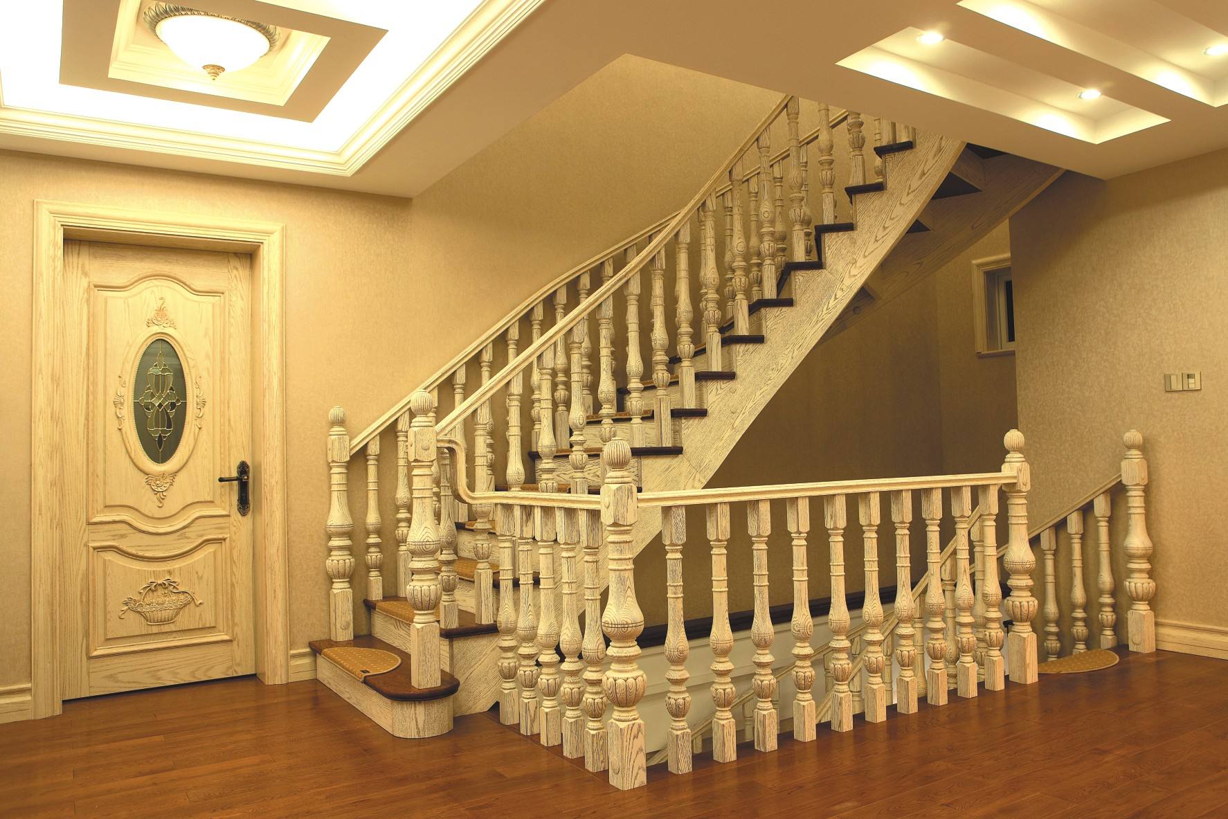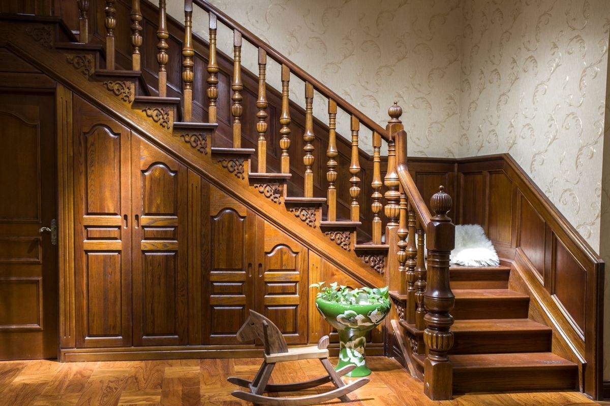 實木樓梯 以其獨特的紋理、典雅的氣質,陳列在了家具裝修列表上的居要之地。實木樓梯由實木材質制作,不似鋼制、玻璃樓梯的冷感美,其散發出的是一種典雅、華美,卻蘊含古樸的天然氣質。實木材質可照顧居者全方位的感官享受,觸感舒適,冬暖夏涼,給人以和諧之感。