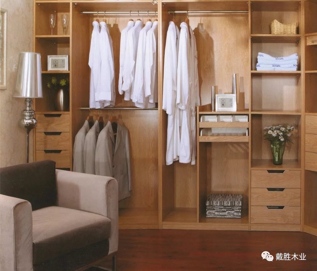 衣柜內部一般可分為疊放區、掛衣區、雜物區、大件區等區域,大件區屬于最上一層,高度不方便平時的拿取,基本上以換季的衣物和被子為主;疊放區是衣柜里最常用到的地方,可以放置一些平常愛穿的衣物,以方便尋找;掛衣區又分短衣空間、中長衣空間、長衣空間和掛褲子空間;雜物區一般用來放置儲存盒,放置的物品視個人要求而定,可以放些行李箱之類,如有承重要求,一般設計在柜子最下層。