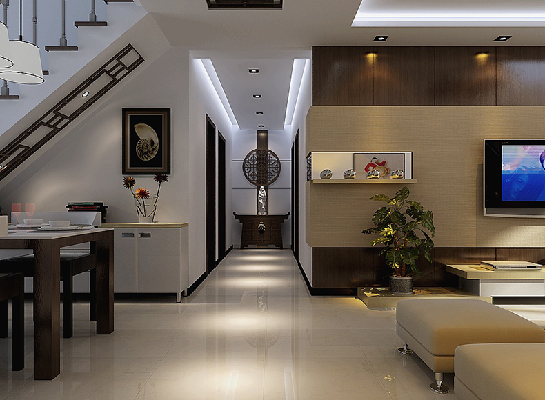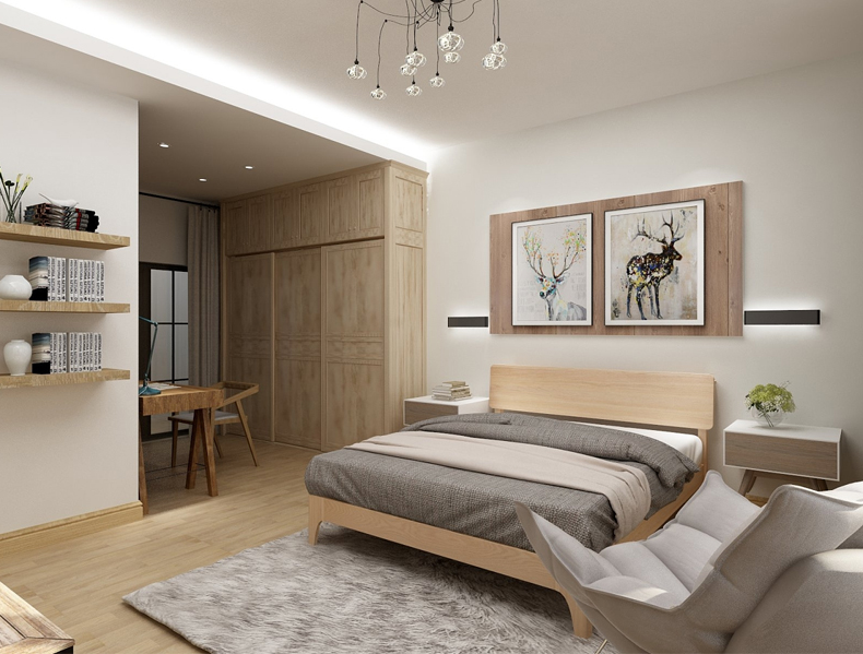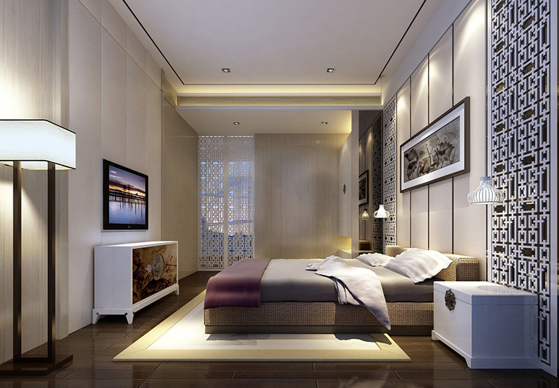 墻壁上簡易的中式掛畫和色彩稍作點綴,