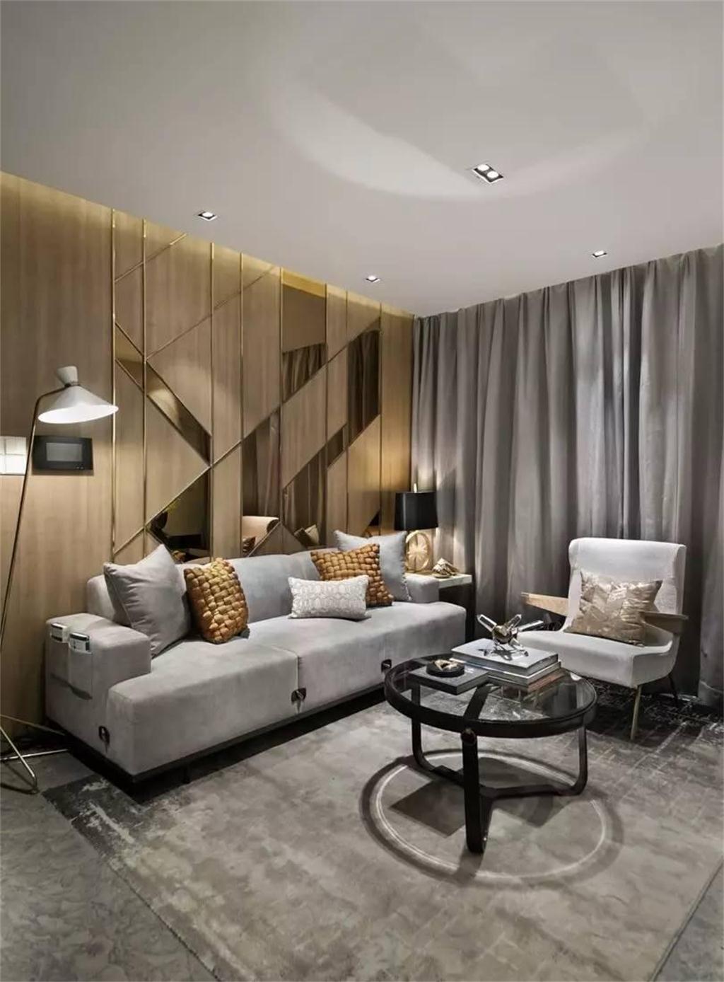 設(shè)計簡潔的沙發(fā)與金屬的茶幾的注入