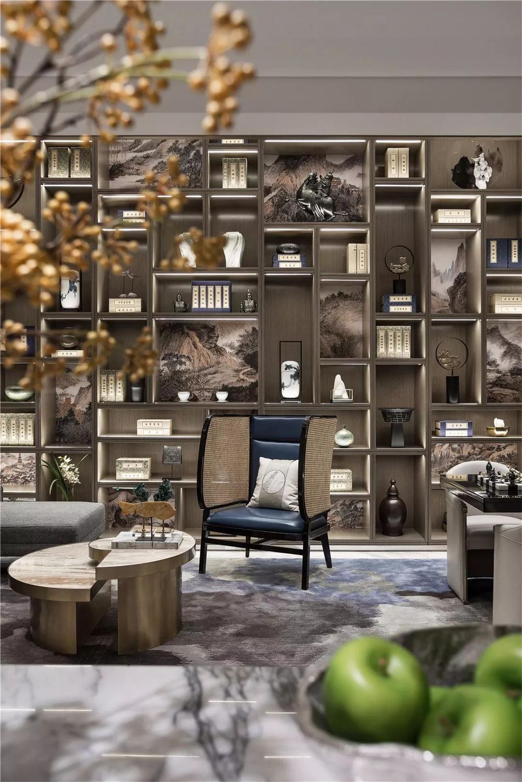 而背景墻的造型則更顯簡潔大氣