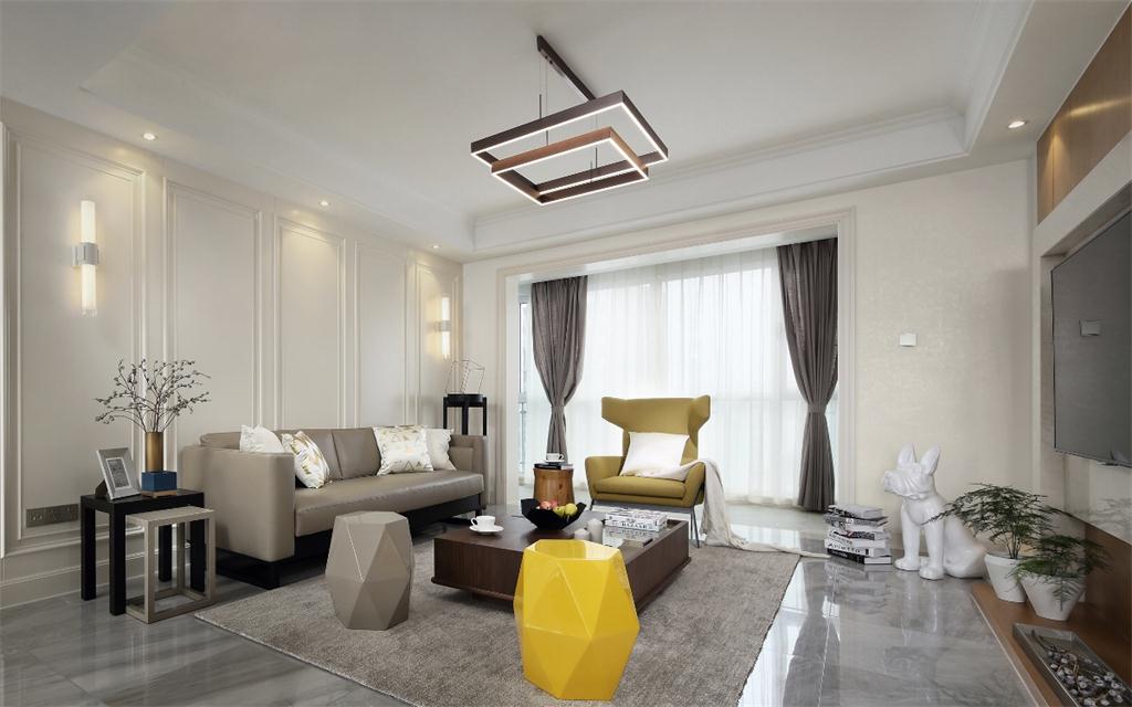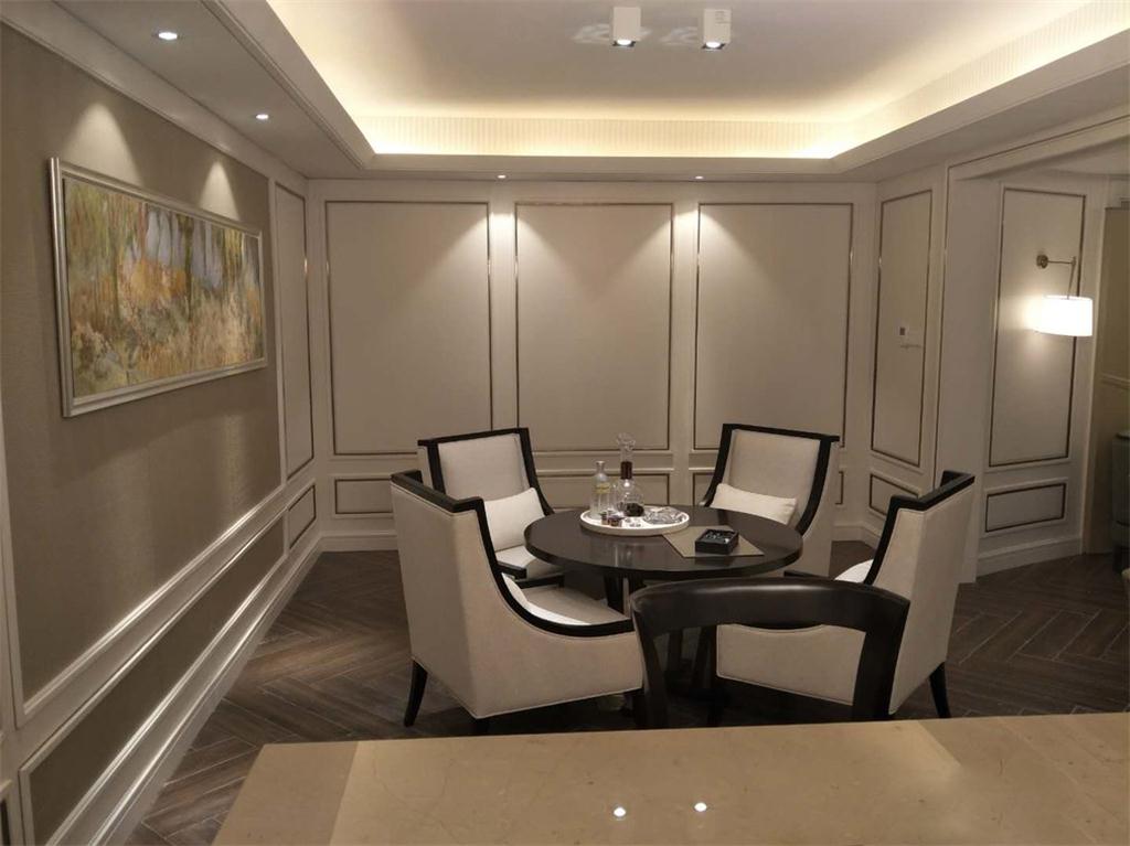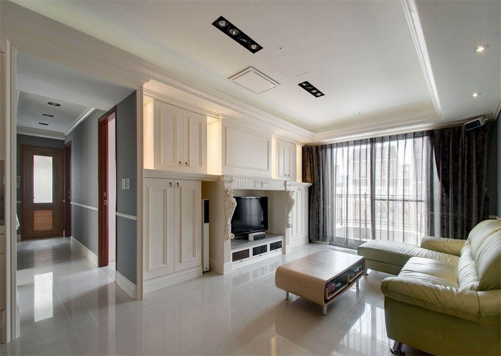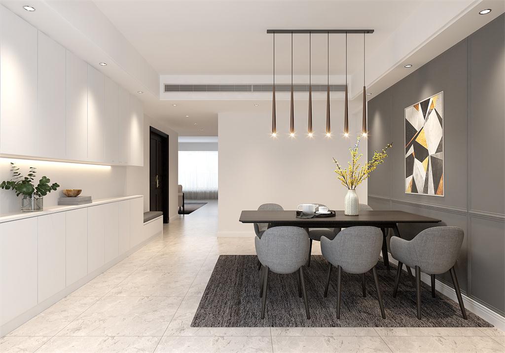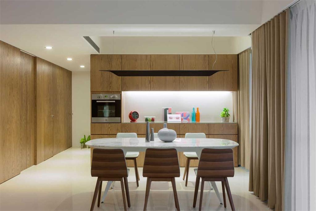 與沙發色調一致的窗簾,餐具柜、桌子、