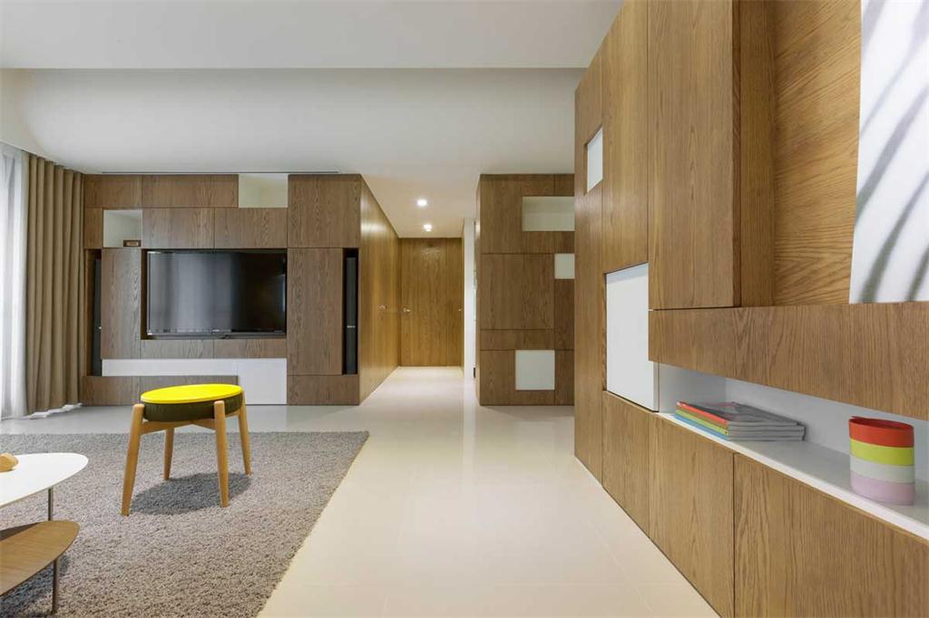 明亮的白色墻壁加之充滿異國情調的木色配之,