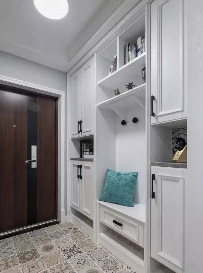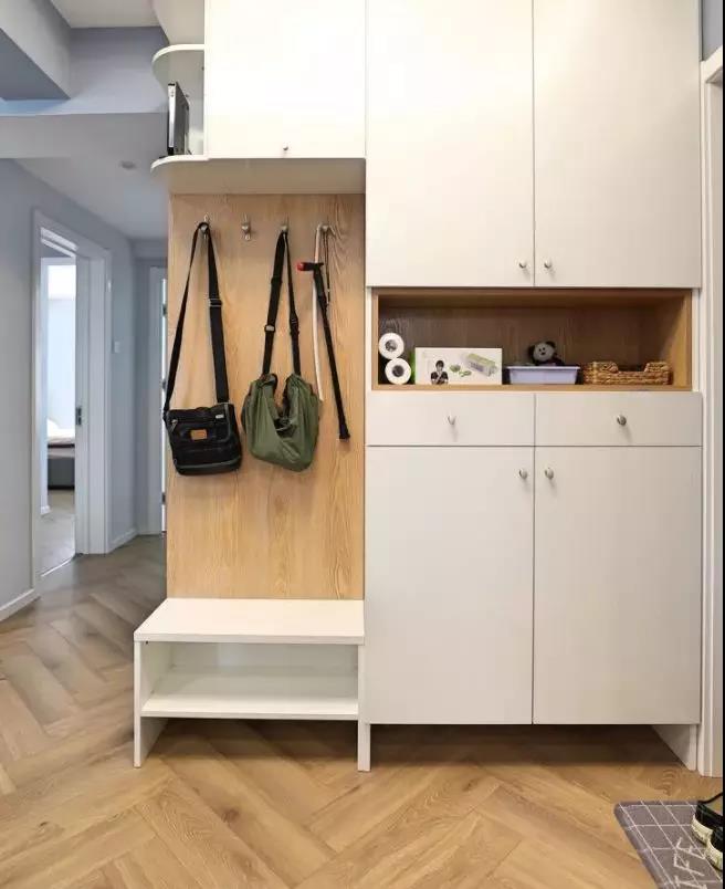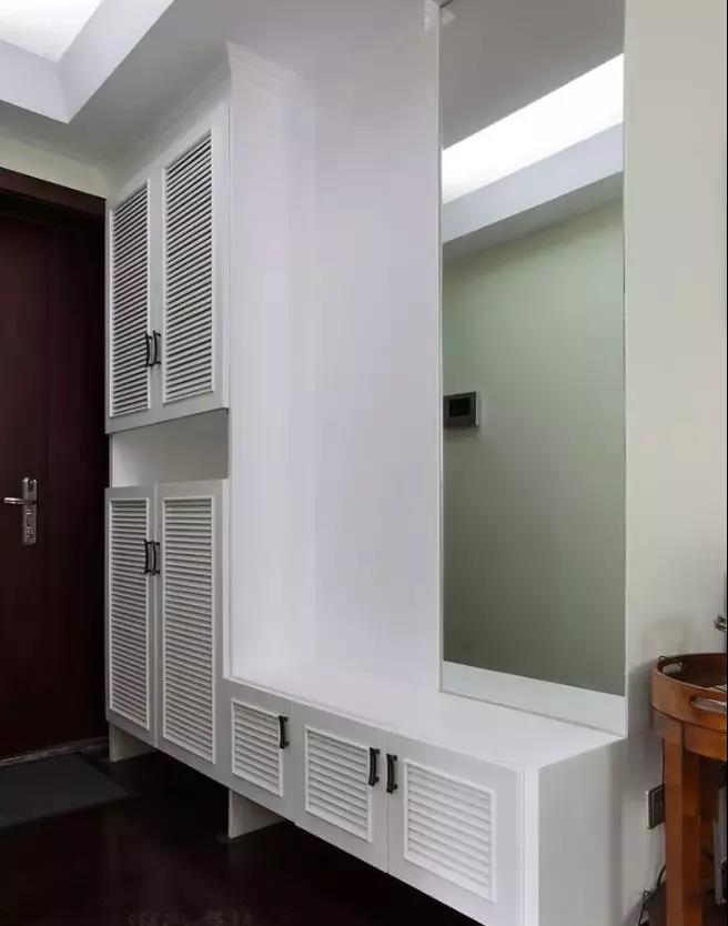 3、鞋柜一般都是裝在進門處,需要使用方便,又不影響美觀,內嵌式鞋柜與墻面保持一致,充分利用空間。