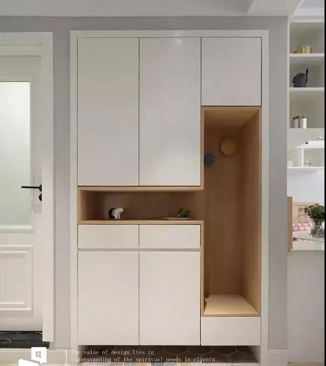 5、鞋柜底部要留空,高度留個15-20厘米,從外面回來,直接就能方便的把鞋子放進去,不用堆在門口那么難看。