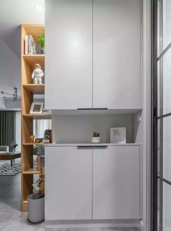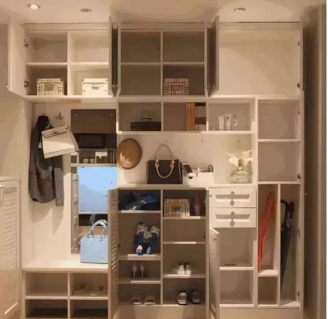 1、入戶鞋柜依墻而建,面積大點做的鞋柜它的功能也更多,可以同時具備鞋柜功能、衣帽間功能、儲物柜功能,利用率高,使用方便,一個柜子能頂三個,很有優勢。