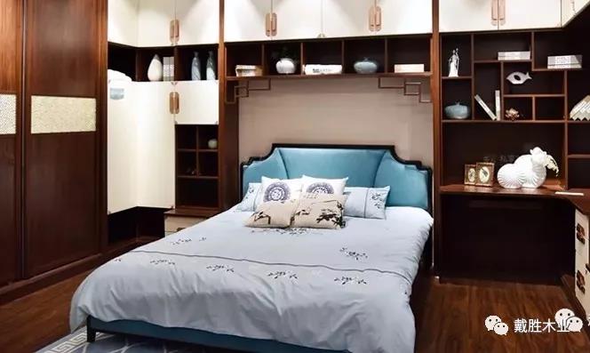 新中式的臥室一般選用安靜沉穩(wěn)的色調(diào),