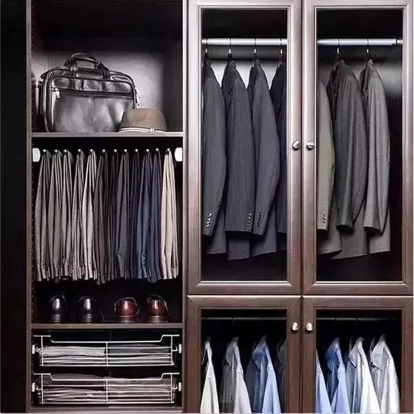 春天到了,每當換季,整理衣柜都是一個“大工程”,除了要將棉服等冬衣收起來,將應季的衣物都拿出來,還會再買一些新的衣服,裝進這已經滿滿當當的衣柜。 ? 衣柜尺寸 與成品衣柜不同,一般定制衣柜都是貼墻+頂天立地的設計。留出用來防潮、隔熱的底部70mm踢腳線,剩下的都是衣柜高度。 最寬的男士大衣寬約600mm,除去衣柜背板和衣柜門,整個衣柜的深度是在530-580mm之間,這個深度是比較適合懸掛衣物的,不會因為深度太淺造成衣服的褶皺。掛衣服的空間也不會因此而感覺太狹窄。 ? 衣柜布局 衣柜內部布局大致需要劃分這幾個區域: ▼疊放區 ▼長衣區 ▼上衣區 ▼抽屜 ▼格子架 ▼褲架 褲架高800—1000mm,專門用于懸掛褲子,保證褲子不起褶皺。大多數褲子都是對折起來掛的,因此掛桿到底板的距離不能少于600mm,否則褲子會拖到底板上。建議選購有防滑桿的衣柜,以防止面料光滑的褲子掉落。