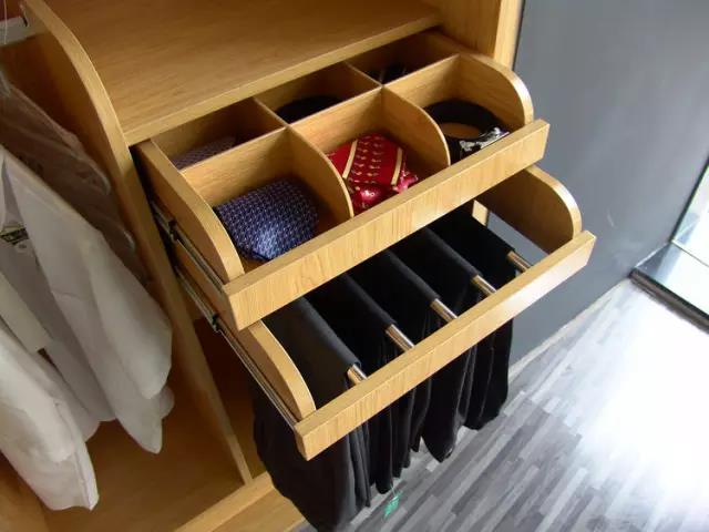 格子架的高度在160—200MM之間。這個區域主要用于存放領帶,由于里面有固定領帶的夾子,因此不需要太高的空間。